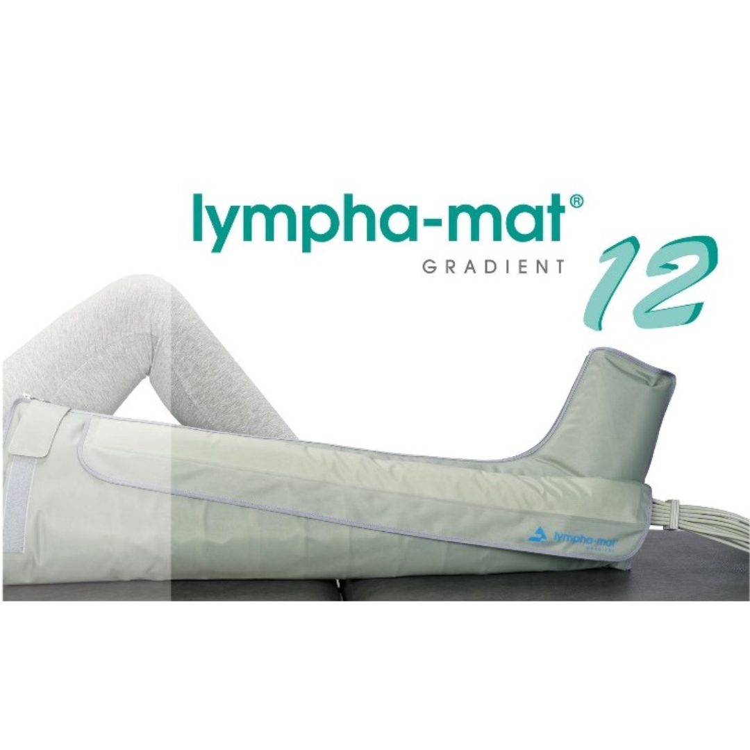 The 12-level gradient system lympha-mat® 300N has been established in the medical field of edema treatment and successful for many years. It is known worldwide for its pneumatic pressurization with the gradient principle, and for its overlapping air chamber system integrated in the treatment sleeves.