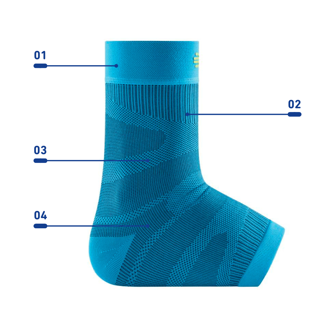 The Compression Ankle Sleeve seamlessly encloses the ankle joint and exerts a constant compression on the surrounding muscles. This improves blood flow and circulation which activates muscles and improves proprioception, helping to minimize the risk of injury. The anatomical design adapts perfectly to the body and allows for maximum freedom of movement.